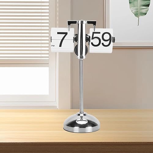 Horloge de Bureau Rétro à Rabat, Mécanique Vintage, Facile à Lire, Alimentée par Batterie, Hauteur Réglable, Design Minimaliste Classique pour Le Salon, Le Bureau (White)