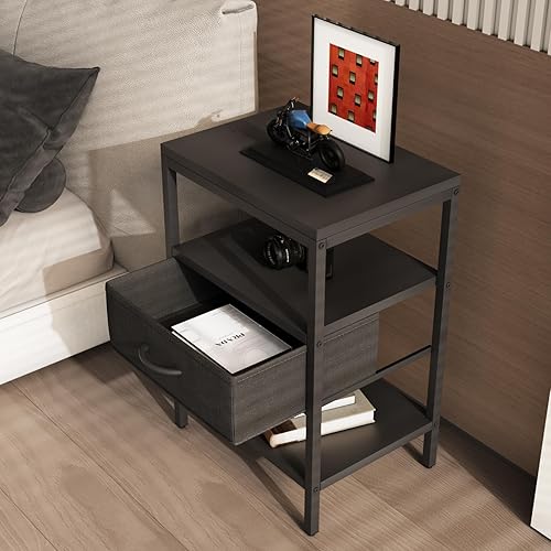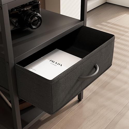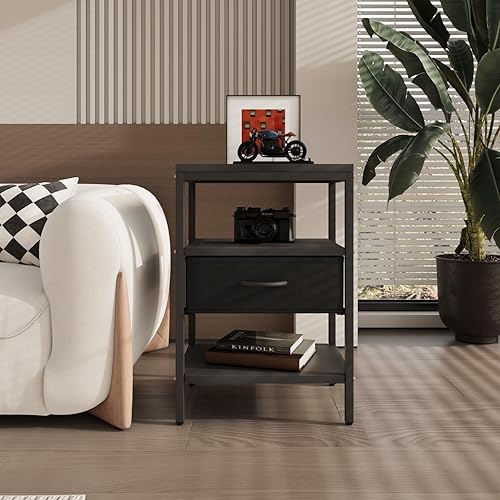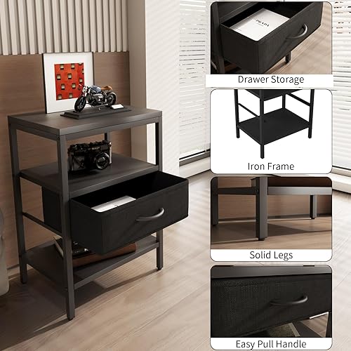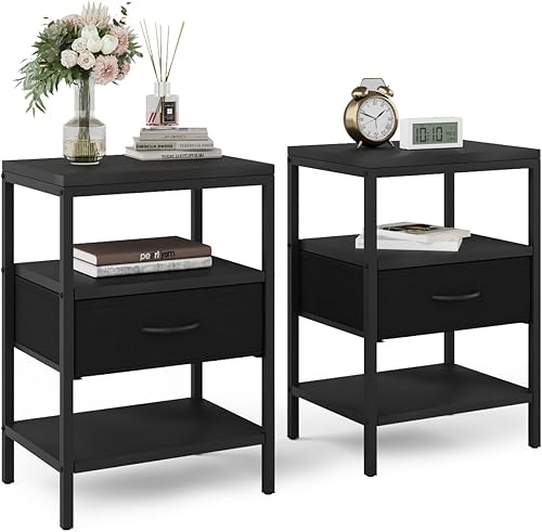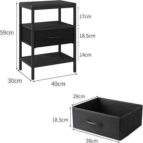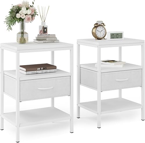 VOWNER Lot de 2 Tables de Chevet, Table D'appoint avec Cadre en Métal et Grand Tiroir en Tissu, Table Basse pour Chambre à Coucher, Salon (Blanc)