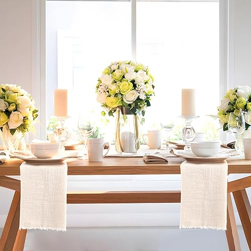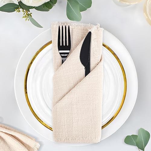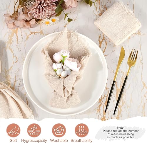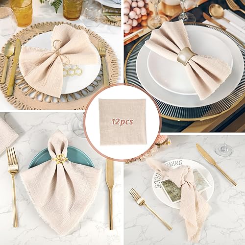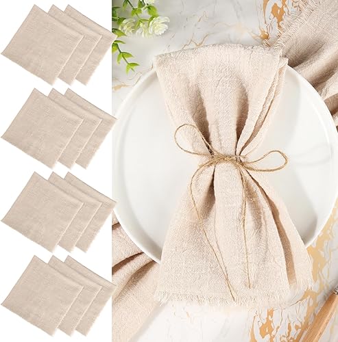 12 Pcs Serviette de Table, 45x45cm Serviettes de Table en Tissu avec Franges, Douce Serviette de Table Coton, Serviettes de Table en Lin avec 10m Ficelle pour Mariages, Fêtes, Anniversaire