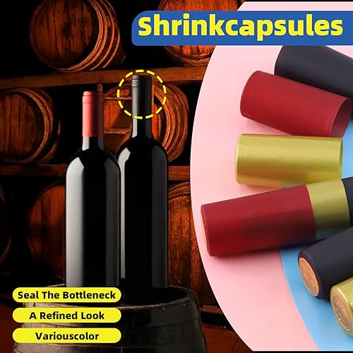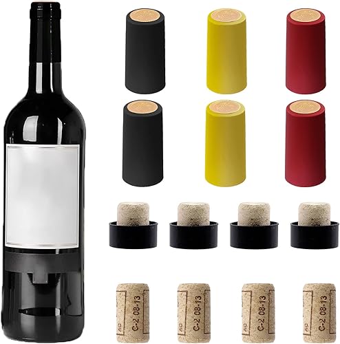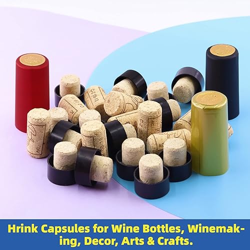 Glarks Lot de 100 bouchons en liège et capsules thermorétractables en PVC comprenant 55 bouchons de vin et 45 capsules thermorétractables de 3 couleurs pour bouteilles de vin, fabrication de vin et