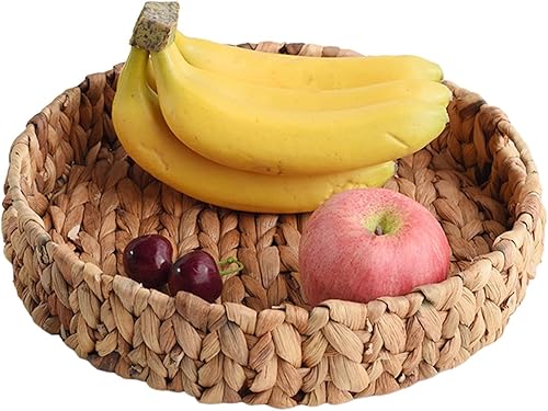 Colcolo Paniers en rotin, plateau en jonc de mer tissé, assiettes de fruits rondes, plateau de service en osier, en osier pour salon de thé, petit