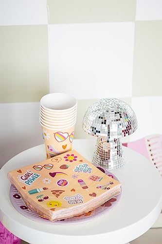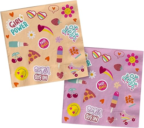 Folat 25032 Groovy Hippie Party-Serviettes-Boho Girlz-33 x 33 cm-20 pièces-Rétro Rainbow Peace pour Décorations, Rose
