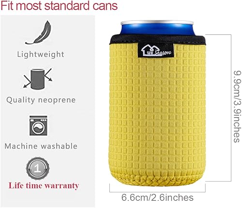 WKieason Lot de 4 manchons isolants refroidisseur canette en néoprène antidérapant pour canettes de bière de 340 ml Noir/rouge/jaune/bleu