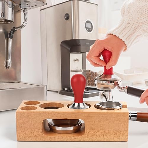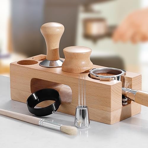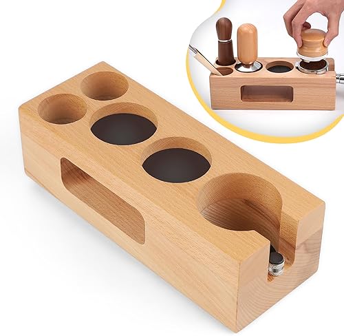 EFUTURETIME Café Tamper Station 51-54mm Réglable, Station de Bourrage de Café en Bois 5 Trous, Espresso Tamper Station pour le Stockage des Accessoires de Café