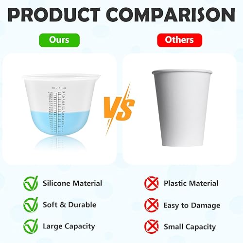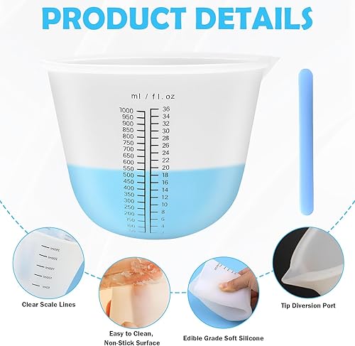 Gobelets Doseurs en Silicone 1000ML Tasse à Mesurer le Silicone, Doseur Resine Epoxy, Gobelet Doseur en Résine époxy pour Moules de Moulage en Résine époxy Art Craft (1000ML)