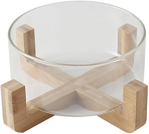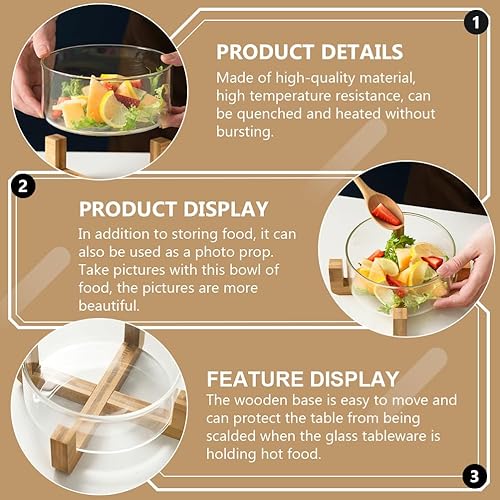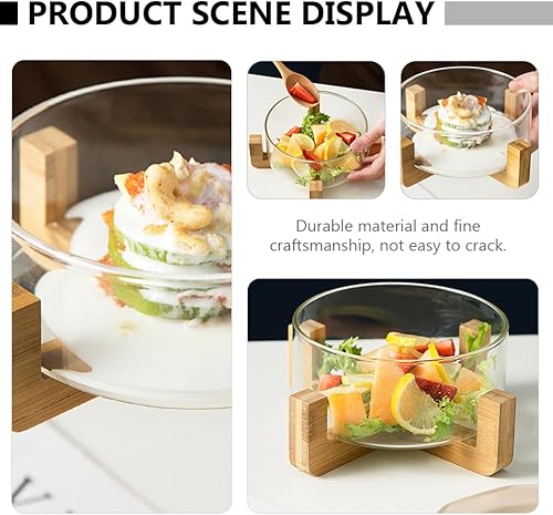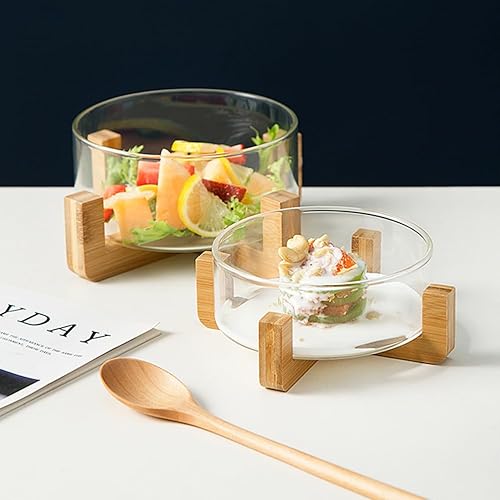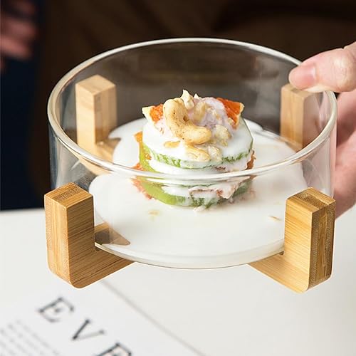 Cabilock Saladier en verre transparent avec support en bois pour apéritifs, desserts, snacks, fruits, snacks, maison, hôtel, restaurant, fête