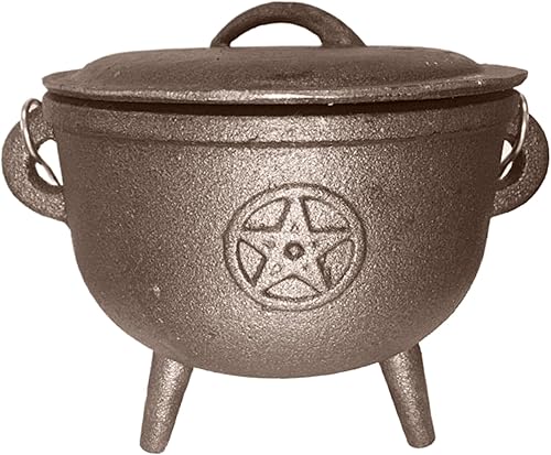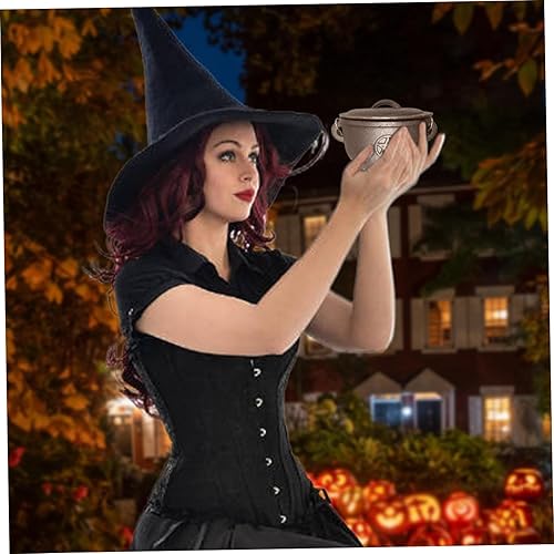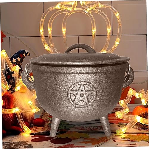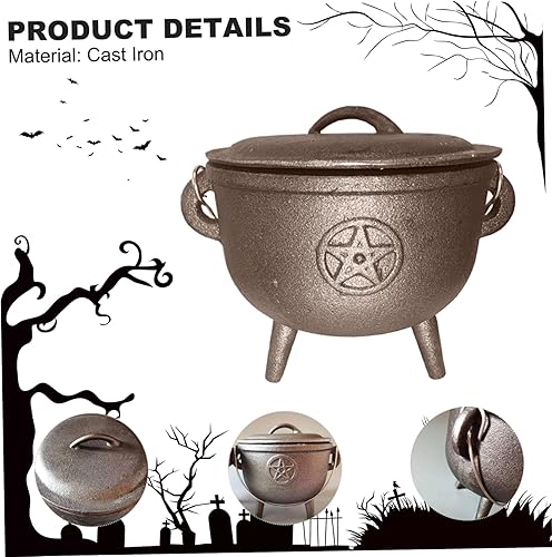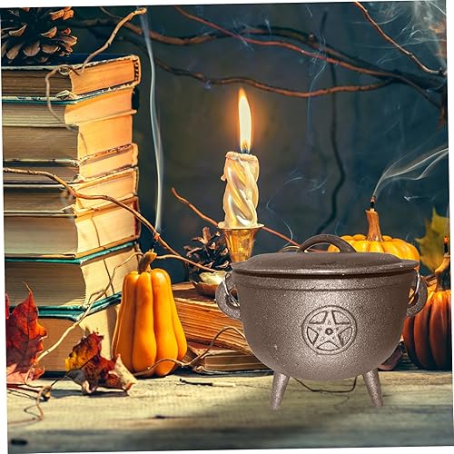 Coucher de chaudron Witchcraft, chaudron pentagram en fonte noire sorcières Cosplay Cauldron avec poignée et jambes Halloween 5.9x5.9x4.9 dans un chaudron multifonctionnel avec couvercle, en fonte de