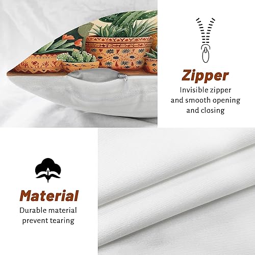 Lot de 2 housses de coussin décoratives carrées motif cactus et plantes du désert vert - Bohème - Décoration d'été pour maison, canapé, lit, canapé, 45,7 x 45,7 cm