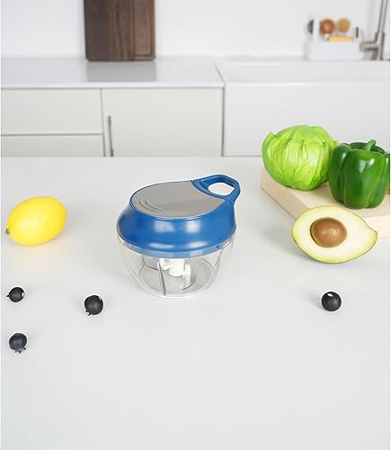 MASTRAD - Hachoir Manuel - 30 Secondes - 500 ml - Hachez, Découper Et Mixer - Oignons, Ail, Echalotes, Herbes - 3 Lames A Double-Tranchant - Lames Amovibles - Bleu