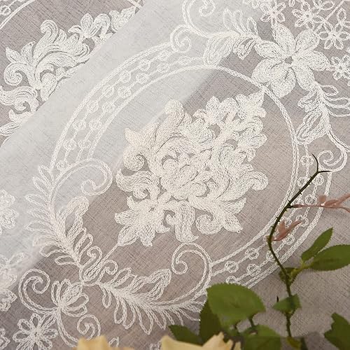 Devola Store bateau transparent - Style maison de campagne - Motif floral - Brodé - Lumière du jour - Avec cordon de serrage - Moderne - Pour cuisine - 107 x 160 cm - Blanc - 1 pièce