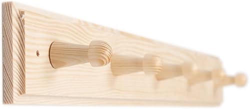 Sossai® - Porte-Manteau Mural | Simple | en Bois | 5 Crochets | Longueur : 47 cm | Naturel, à Peindre | HGE | Porte-Crochets, patères