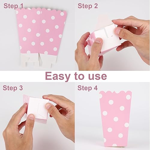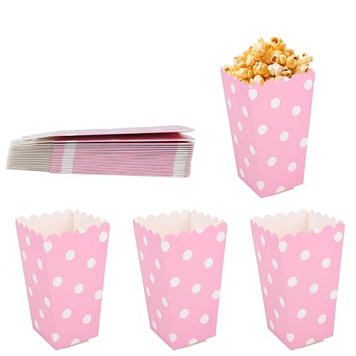 lasuroa 24pcs Mignonnes Boîtes à Pop-Corn Roses, Mini Gobelets Popcorn en Carton avec Pois Blancs Adorables Petits Seaux Popcorn pour les Fêtes Fournitures Favoris