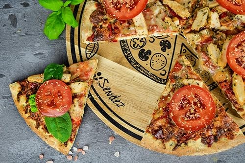 Sendez Planche à pizza avec poignée et impression en bois de manguier 42 x 30 cm Planche à découper Planche à fromage Assiette à pizza