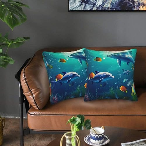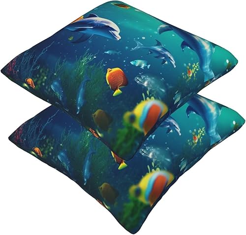 FLYIFE Lot de 2 taies d'oreiller carrées douces pour canapé, salon, canapé, lit, bureau, voiture, 50 x 50 cm Motif poisson sous-marin