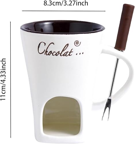 2PCS Fondue Chocolat Bougie, Tasses à Fondue Au Chocolat, Céramique, Tasse à Fondue Candy 130 ML avec Fourchette pour Dîner Chauffe-Beurre Tapas à La Maison, Fondoir pour Chocolat et Fromage, Brun