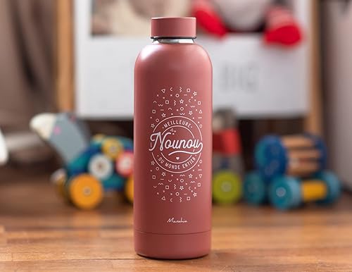 Manahia Bouteille Isotherme Cadeau Nounou - Meilleure Nounou du Monde Entier - 500ml - Gourde Isotherme - Acier Inoxydable - Gourde Sport - Cadeau Personnalisé Nounou - Merci Nounou