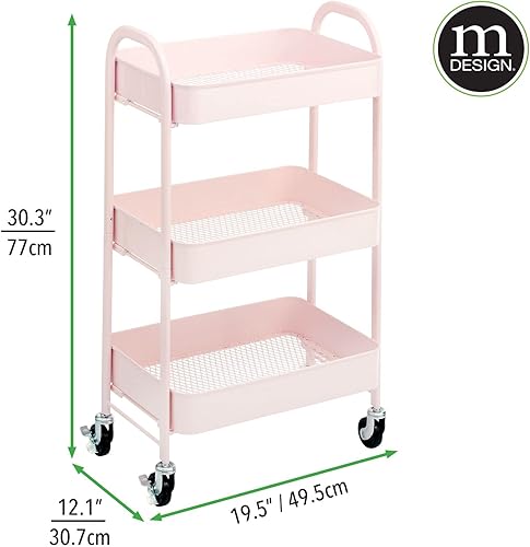 mDesign chariot salle de bain en métal – rangement salle de bain mobile et spacieux à 3 niveaux – étagère rangement pratique pour la chambre d'enfants ou la salle de bain – rose clair