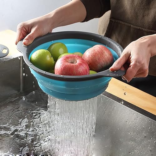 Alnicov Lot de 2 passoires pliables, passoire flexible en silicone pour légumes/fruits, passoire pliable pour cuisine (bleu)