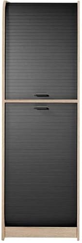 Tousmesmeubles Colonne de Cuisine Haute à Rideaux Chêne/Noir - GUNJO - L 58 x l 47 x H 181 cm - Neuf
