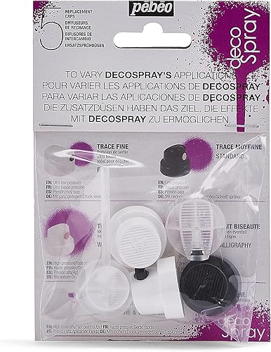 PEBEO - decoSpray - 5 Diffuseurs de Rechange pour Spray - 1 Buse Tracé Fin + 1 Buse Tracé Moyen + 1 buse Tracé Large + 1 Buse Traits Biseautés + 1 Buse Trait Ligne et Transfert de Peinture