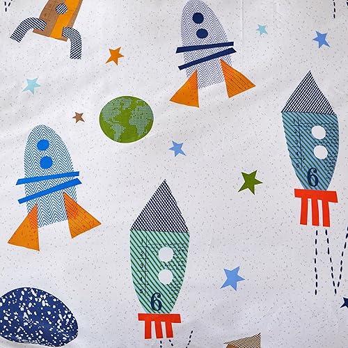 YASMENG Housse de Couette 140x200 Enfant Motif Fusée Planète Parure de Lit Enfant 100% Coton Réversible Linge de Lit Cartoon pour Enfants Garçons avec Fermeture Éclair avec Taie d'oreiller 65x65 cm