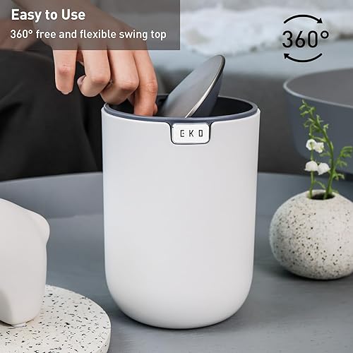 EKO Fandy Mini poubelle de table ronde de 1,5 l avec couvercle basculant, pour bureau, maison, salle de bain, chambre à coucher, voiture (bleu)