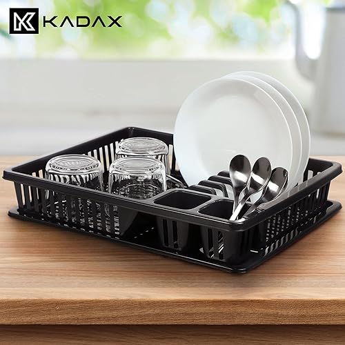 KADAX Égouttoir à Vaisselle en Plastique, Support à Vaisselle avec Panier à Couverts et Bac de Récupération d'eau pour Assiettes, Verres et Couvercles (Anthracite)