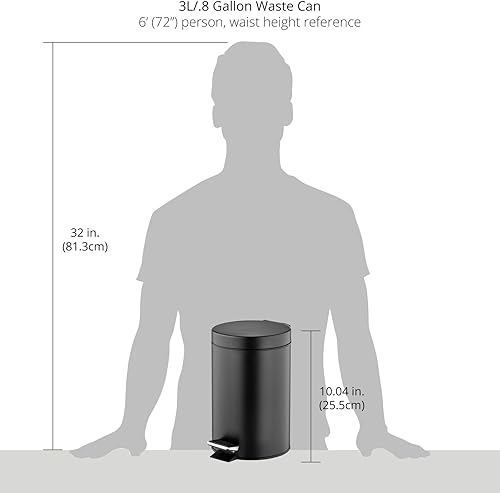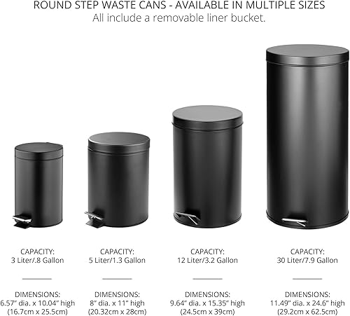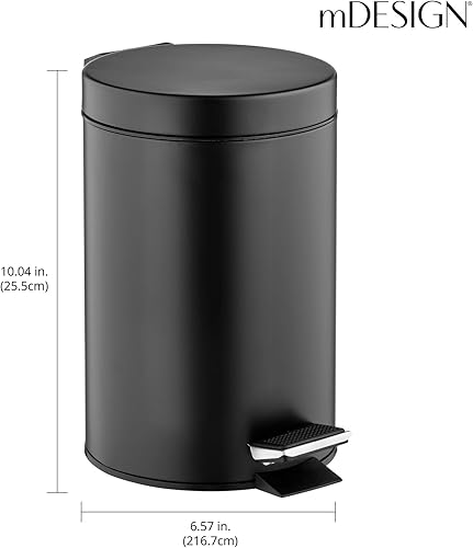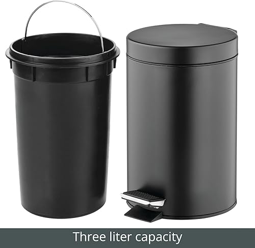 mDesign poubelle à pédale 3L – poubelle en métal avec couvercle et seau plastique – parfaite comme poubelle sous évier, corbeille à papier, de cuisine ou de salle de bain – noir