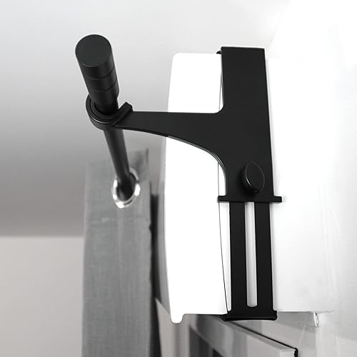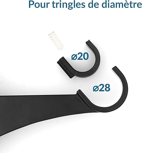Lot de 2 Supports de Tringle à Rideaux sans Perçage ni Collage - Fixation sur Coffre de Volet Roulant Hauteur 14 à 24cm - pour Tringle à Rideaux D20-28mm - Colori Noir Mat - Qualité Française