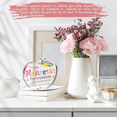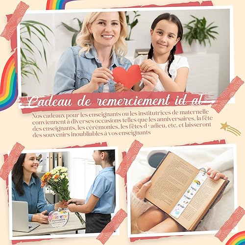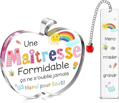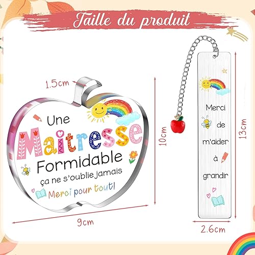 Namalu Cadeau pour Maîtresse d'École de Fin d'Année Décoration en Acrylique Forme de Pomme Marque-Page en Acier Inoxydable Cadeau Merci Maitresse pour Enseignant Noël École Maternelle Remerciement