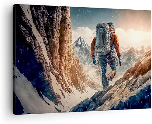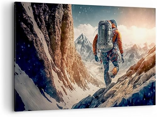Moderne Impression sur Toile 100x70cm Image Tableau Decoration Murale Alpes Escalade Montagnes Grand Tableaux Decoratifs Muraux Chambre Horizontal Deco Cadre Décoration Salon Art Wall AA100x70-5740