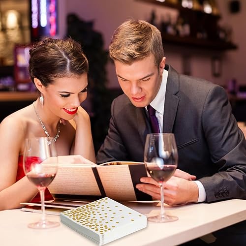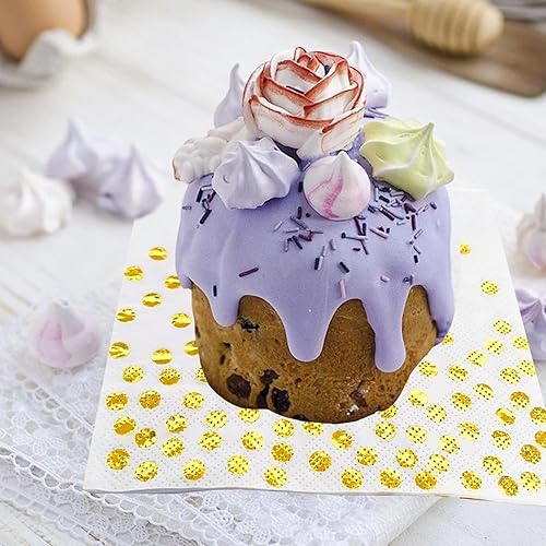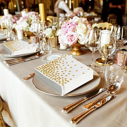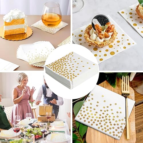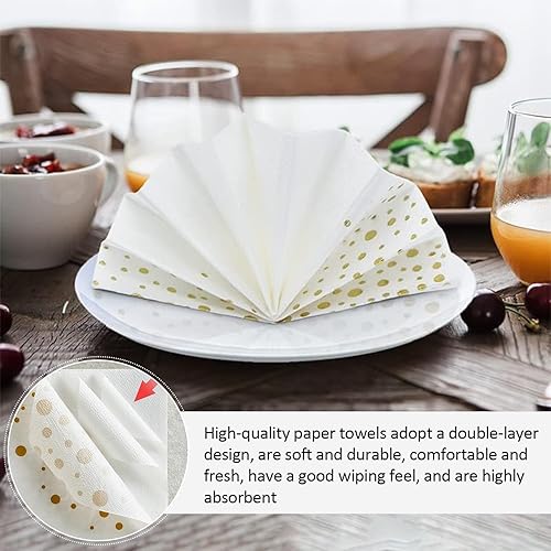 60 Pièces de Serviettes Dorées, Serviettes en Papier Jetables À Pois, Serviettes de Fête À Pois en or Rose, Adaptées aux Anniversaires de Famille, aux Réunions D'amis (Blanc)