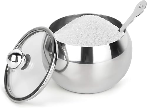 Hanmir Sucrier en acier inoxydable avec couvercle transparent et cuillère à sucre 8,1 onces (240 millilitres) Récipient à sucre pour la maison et la cuisine