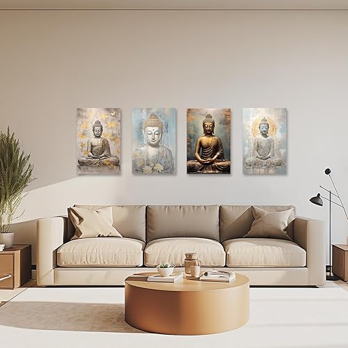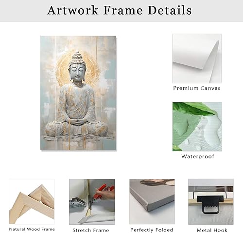 LZIMU Impression sur toile représentant une statue de Bouddha - Images zen - Œuvre d'art spirituelle bouddhiste pour yoga, spa, salle de méditation encadrée (image 3, 40,6 x 61 cm)