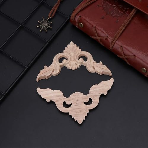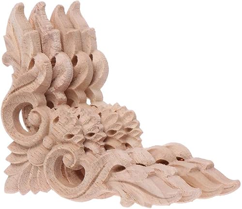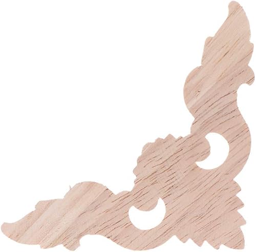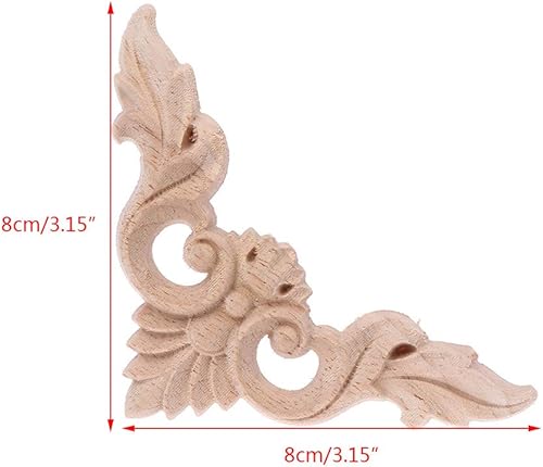angelliu Bois Sculpté 4pcs / Set Sculpté Coin Onlay Appliques Non Peint Cadre Placard Armoire Décalque Bois Sculpté Décalque pour Les Meubles De Maison Decor 8x8cm