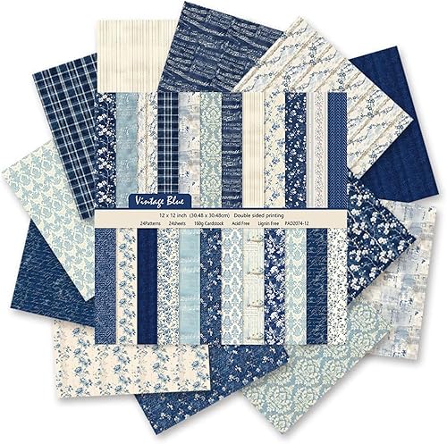 Hshenjhu 24 Feuilles Papier pour Scrapbooking, 30.5 X 30.5 cm Double Face Papier de Scrapbooking, 12 Types Sans Acide Papiers Album de Coupures, pour Journal, Carnet, DIY Album, Artisanat