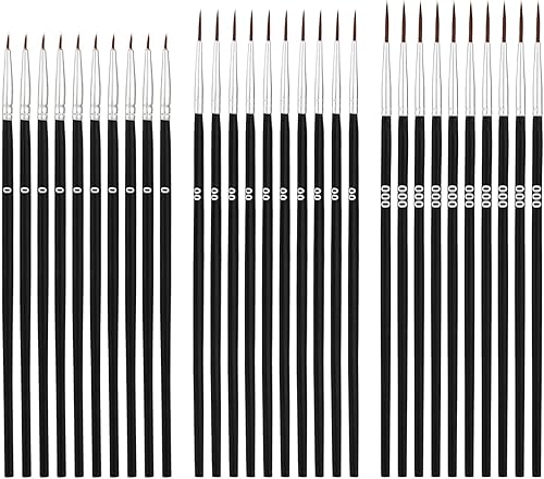 30pcs Pinceaux de Peinture de Détail, Pinceau à Pointe Fine avec 3 Tailles #0#00#000 Pinceaux de Peinture Miniatures pour Peinture Miniature en Classe Aquarelle Peinture Acrylique sur Visage