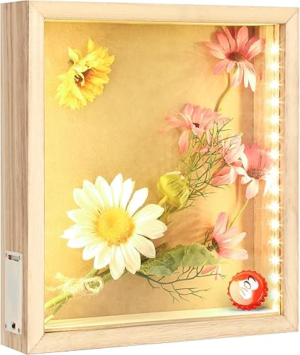 Cadre de boîte d'ombre de LED 28CM x 30cm Porte - Bouteille de vin vitrine Murale et de Table en Bois boîte de mémoire Cadre Photo Affichage boîte de Souvenir Bouquet Photo Artisanat Tickets