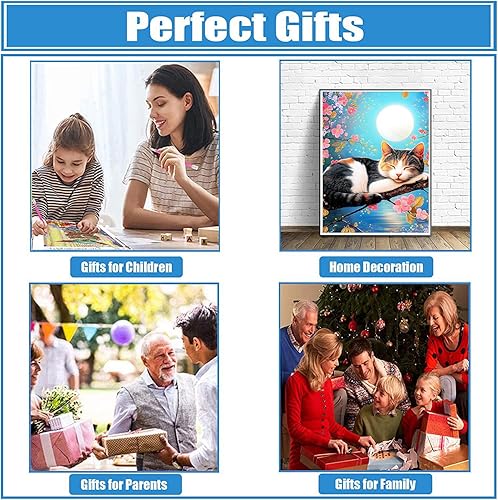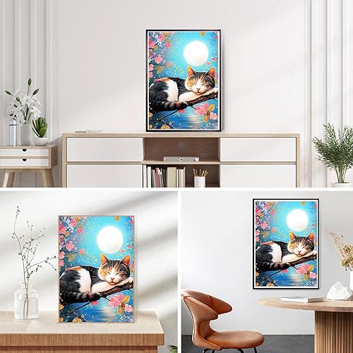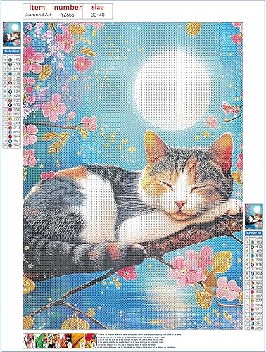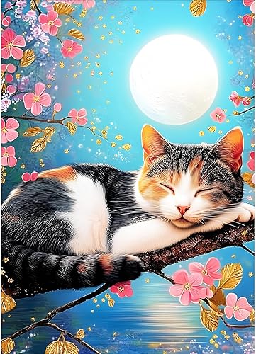 DPHERO 5D Chat Endormi Diamond Painting Kits, DIY Lune Art du Diamant Painting Kit Complet, Fleurs Broderie Kits de Peinture sur Diamant Point de Croix Painting pour Adultes Débutants 30x40 cm