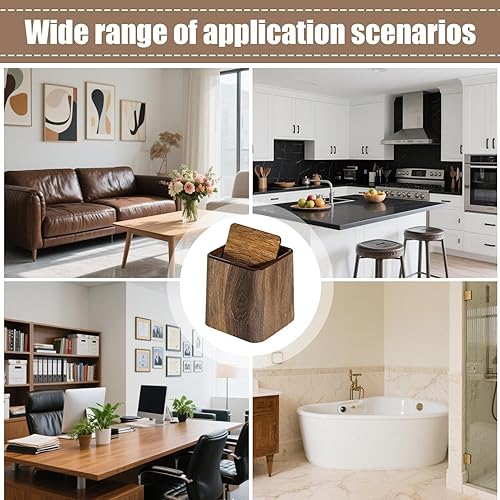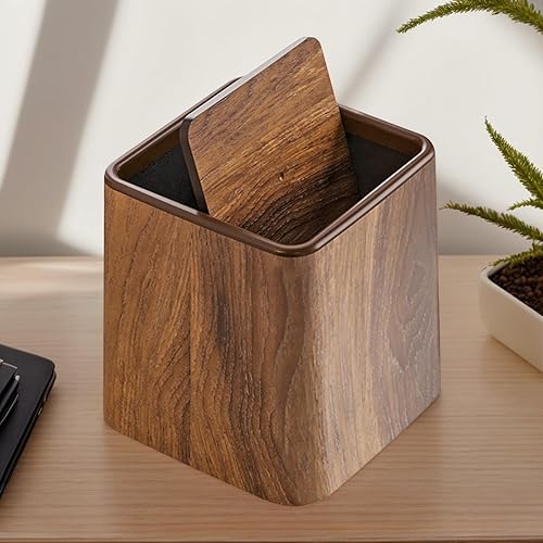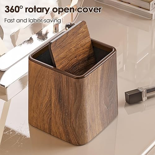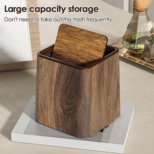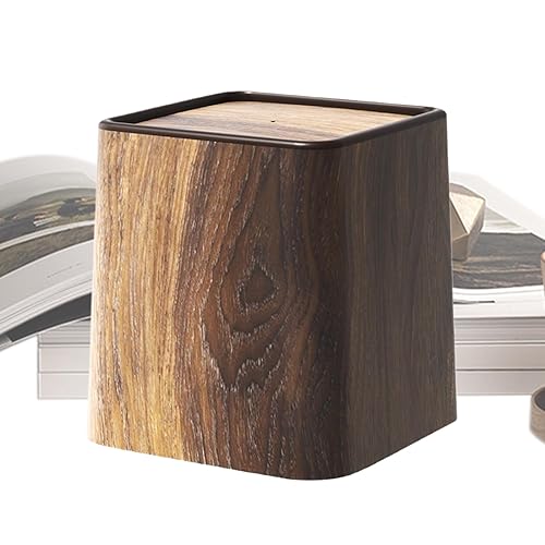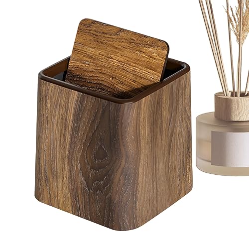 Imitation Rétro Poubelle En Bois, Petite Poubelle De Bureau, Mini Bac À Ordures Avec Couvercle, Conception De Couvercle Poussoir, Base Non Glissée, 14,7x14,7x15,3 Cm, Pour La Chambre À Coucher De La C