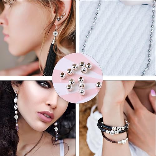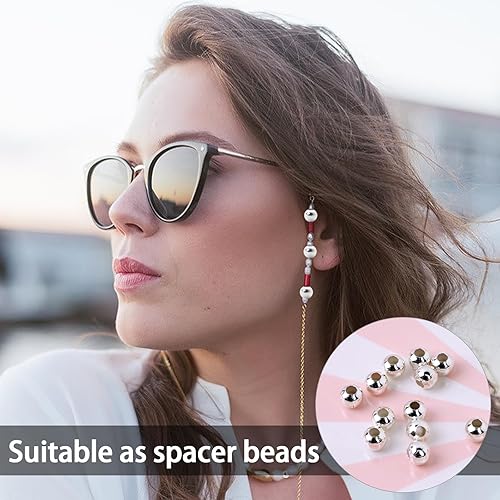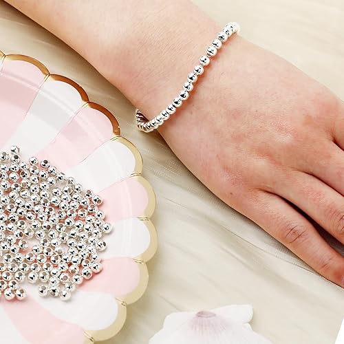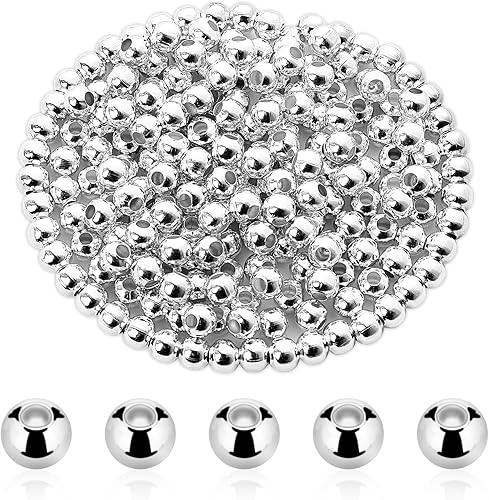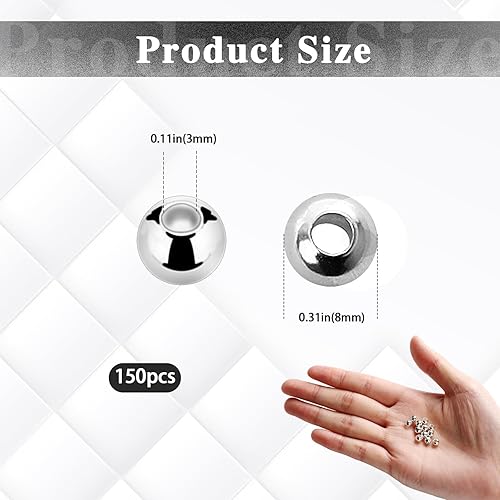 Lot de 150 perles d'espacement rondes lisses de 8 mm pour la fabrication de bijoux en métal plaqué argent avec trou pour la fabrication de bijoux, bracelets, colliers, boucles d'oreilles