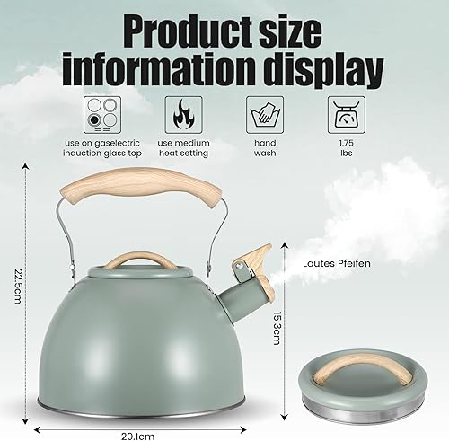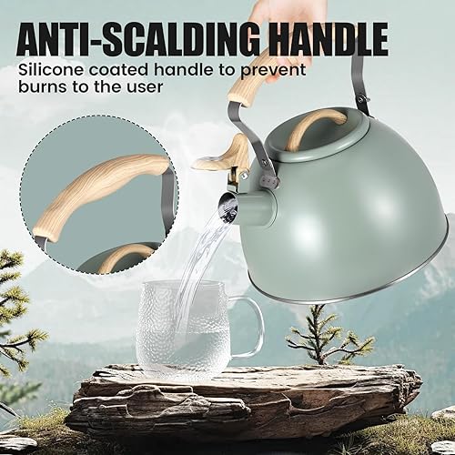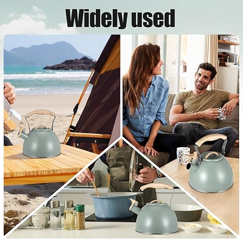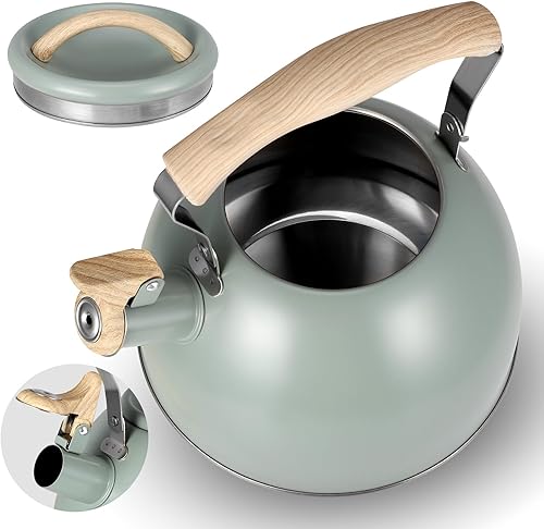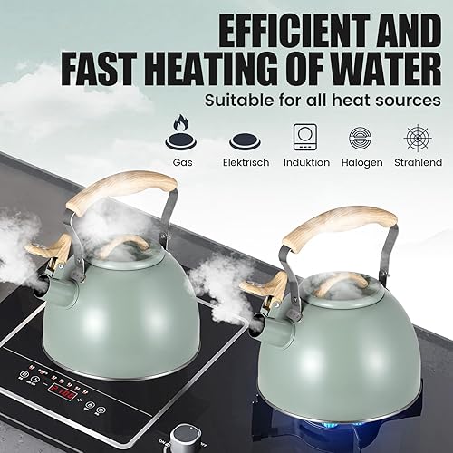Bouilloire Induction, 3L Bouilloire Sifflante en Acier Inoxydable Vintage Bouilloire Gaz vec Poignée en Bois Anti-brûlure Théière avec Sifflet Poignée Pliante Thé Café Cuisinière Gaz Plaques Induction