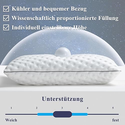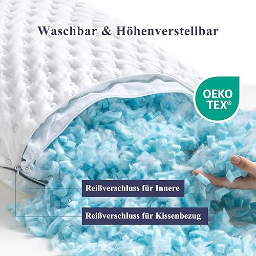 BedStory Coussin en mousse à mémoire de forme, réglable en hauteur 42 x 70 cm, coussin en mousse à mémoire de forme, certifié Öko-Tex pour dormir sur le dos et sur le côté, housse lavable