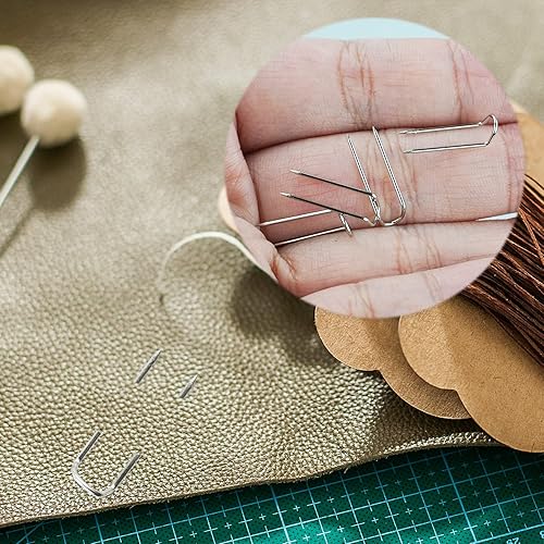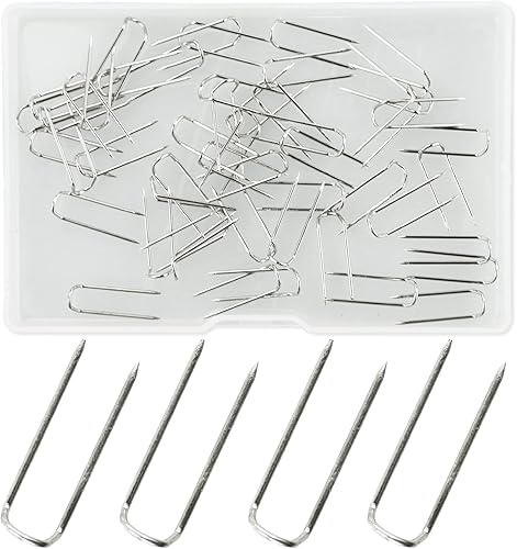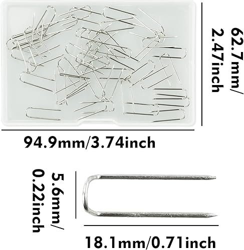 Lot de 50 épingles à coudre en U pour matelassage, épingles à coudre pour tissu, épingles à double blocage en acier inoxydable pour la couture, décoration d'intérieur, boîte de 2.3x0.67 cm
