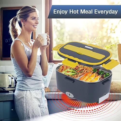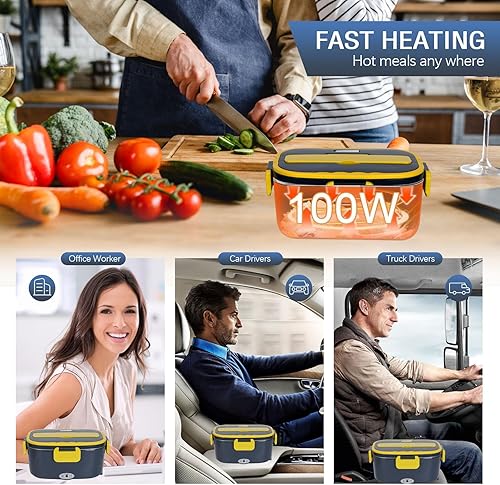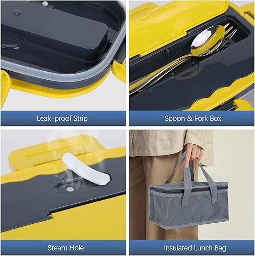 Gkstly Boîte à déjeuner électrique portable 60 W pour adultes, 2 récipients alimentaires amovibles 304 SS de 1,5 L, 1 compartiment à fruits avec fourchette, sac de transport isotherme pour voiture