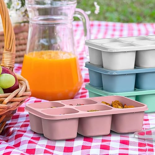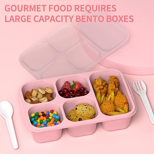 MEEYUU Lot de 4 boîtes à déjeuner Bento pour adultes et enfants, 5 compartiments pour la préparation des repas pour enfants, boîtes de conservation réutilisables avec couvercles transparents, passent