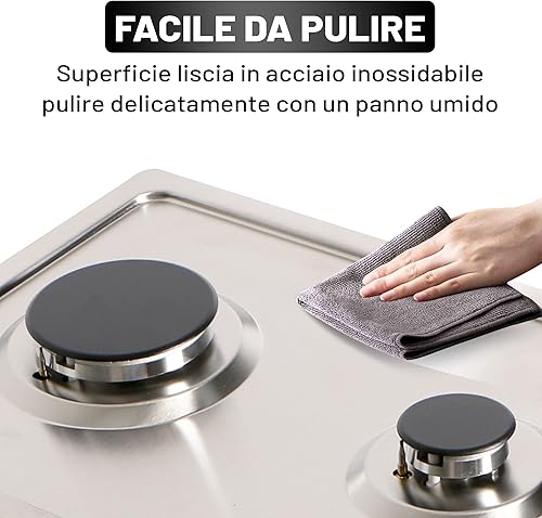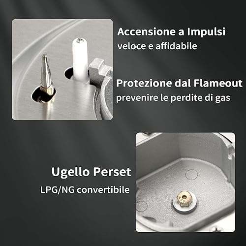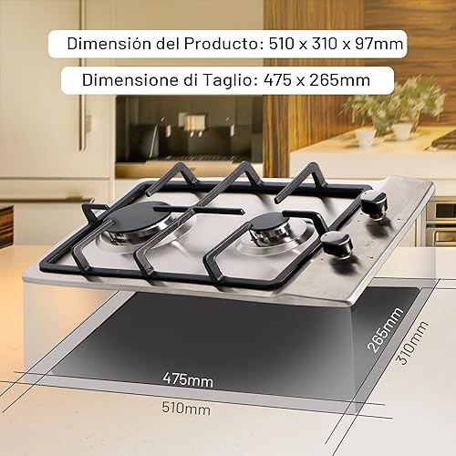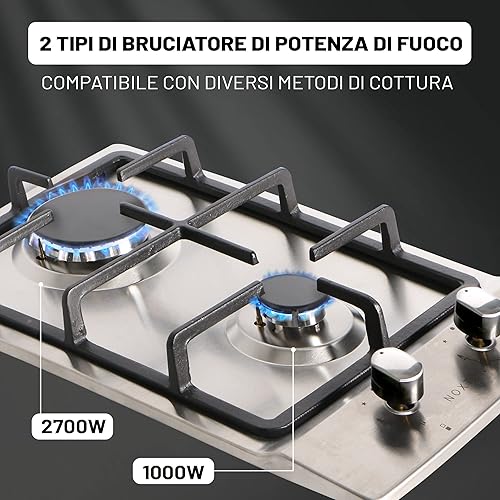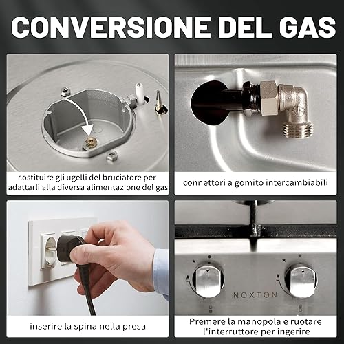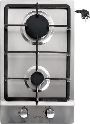 NOXTON Plaque de Cuisson Gaz en Acier Inoxydable, Plaque Gaz 2 feux, avec kit GPL pour Gaz/GPL, 220-240 V [classe énergétique A+]