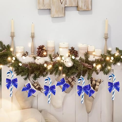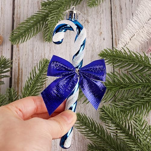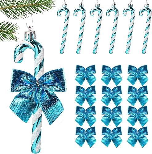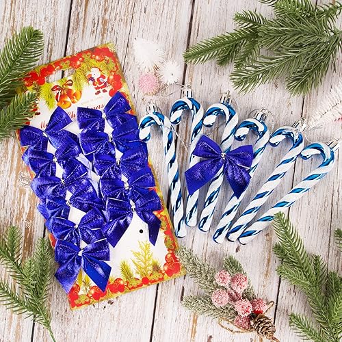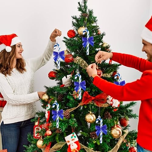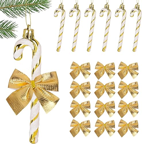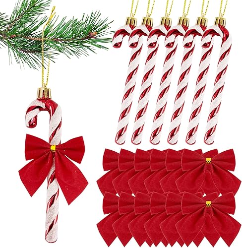 6PCS Cannes de Bonbons avec 12PCS Noeuds de Ruban Rouge Décorations Ornements de Sapin de Noël Cadeau