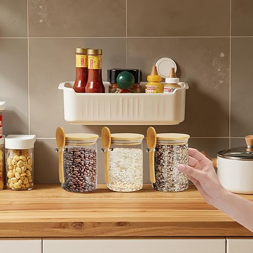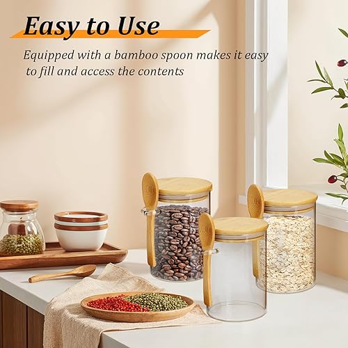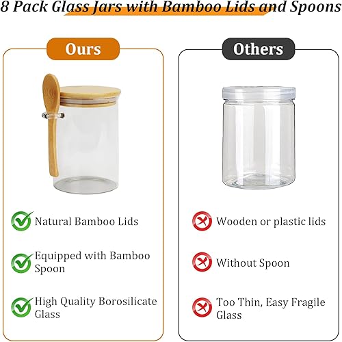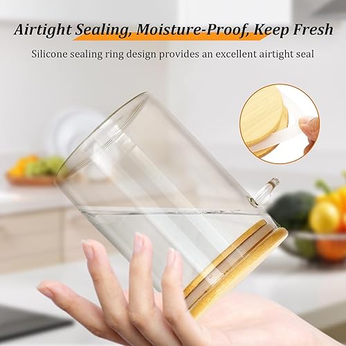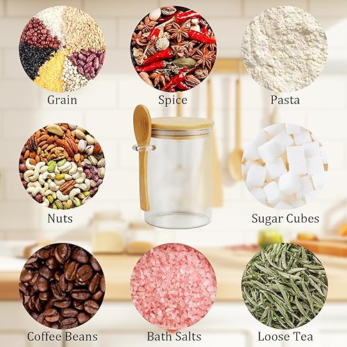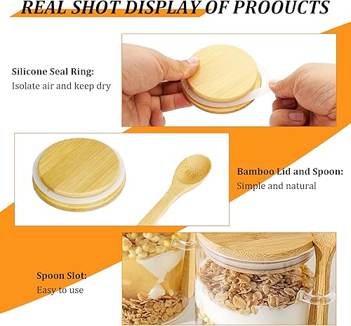 RETON Lot de 8 bocaux en verre avec couvercle hermétique et cuillère, 400 g, jerrican d'avoine Overnight avec couvercle en bois, cuillère - Bidon de stockage alimentaire en verre pour grains de café