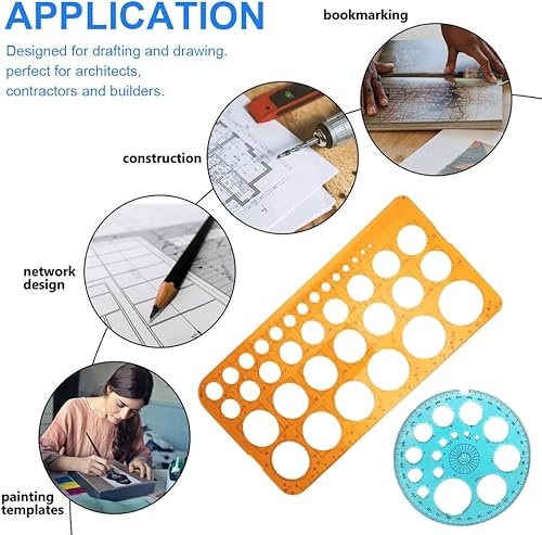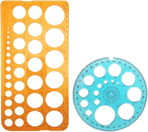 OUDQFCJ Pochoir circulaire avec 36 cercles, pochoirs circulaires à peindre, règle circulaire pour aider au dessin, pochoir quilling, orange transparent